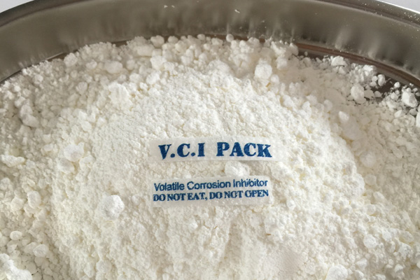 氣相防銹粉末多種特制的氣相緩蝕劑原料按一定配比均勻混合加工而成,具有水溶性,是一種新型的氣化性防銹材料。在密閉空間內(nèi),VCI經(jīng)氣化揮發(fā)到金屬的每個(gè)角落,吸附在金屬表面形成致密保護(hù)膜層從而起到防銹的作用